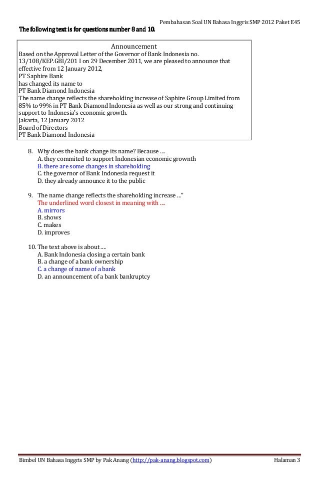 Soal Un Bahasa Inggris Smp